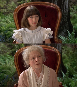 Various dualities and parallels suggest themselves. Young Alice is naïve and obliging; elder Alice is jaded and standoffish. We see Alice grow up, and we see Lucy grow up. But Alice has repressed her sexuality while Lucy is awakening to hers.