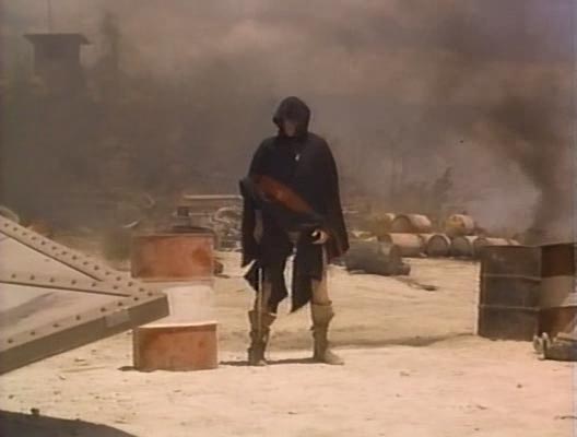 The black-clad leader eventually leads his little gang from a wasteland into a jungle, but action is scanty and pacing is draggy. The lead actor looks like Burt Reynolds, but his acting is stiff as a hat rack.