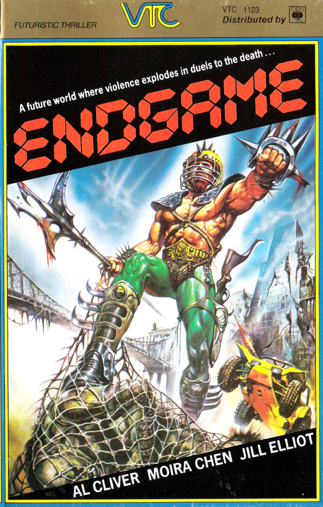ENDGAME – BRONX LOTTA FINALE (Italy, Nov 1983). Here’s Joe D’Amato again. Endgame is a rare exception to the “one name” category so common in Road Warrior imitators. Here, everyone has a regular first and last name. Society hasn’t totally broken down in this one, at least not in the city where the movie opens.