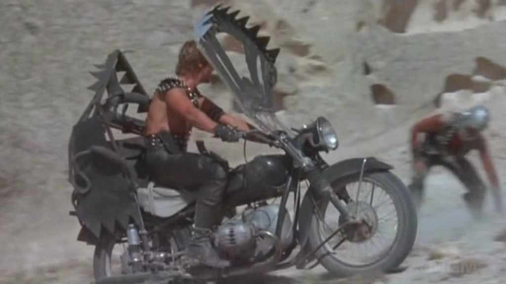 I never tired of the Turkish locations (mostly the Fairy Chimney areas near Cappadocia), the studded leather straps and masks, and – best of all – a dozen motorbikes fitted with shields, pipes, spikes, and flanges.