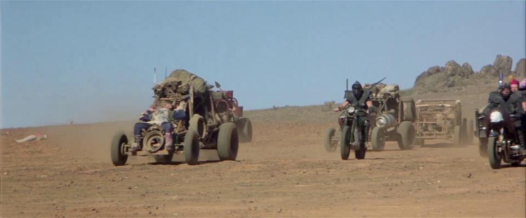 But this staple – the road action – is usually underplayed in the films, probably because everyone knew it would be impossible to match The Road Warrior at this level. Indeed, 40+ years later, only Mad Max: Fury Road might beat it.