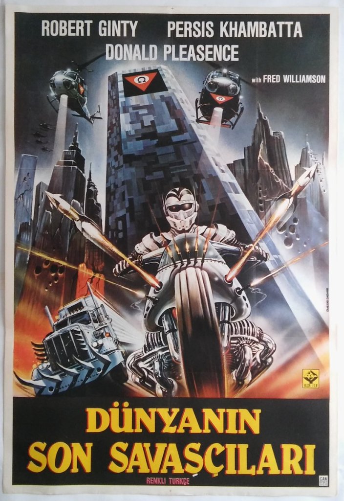 WARRIOR OF THE LOST WORLD (Italy/USA, late 1983). More science fictiony and more campy than the other films on our list, this very fun film gives our hero an intelligent sentient motorbike obviously inspired by KITT from Knight Rider. Both the hero and his bike crack sarcastic jokes as they aid innocent vagabonds against evil warlords.