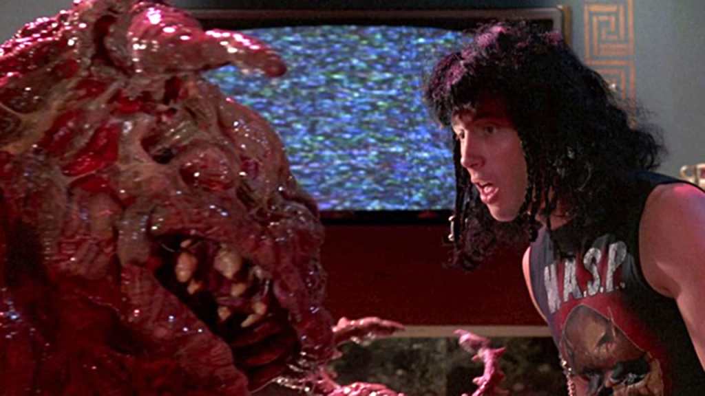 As with Poltergeist and TerrorVision, television figures mostly into the first parts, being the initial gateway for the evil intruders. Some excellent effects depict demons pushing their heads and hands through a “stretched” television screen.